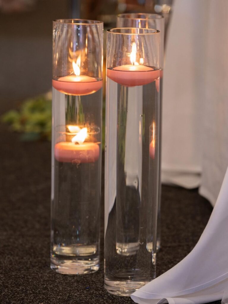 We used amber-toned lighting, soft draping, and textured fabrics to make the space feel inviting. The combination of rustic wood, elegant glass, and floral arrangements added visual depth. Each design decision was made to ensure that when guests entered the room, they felt an immediate sense of romance and celebration.