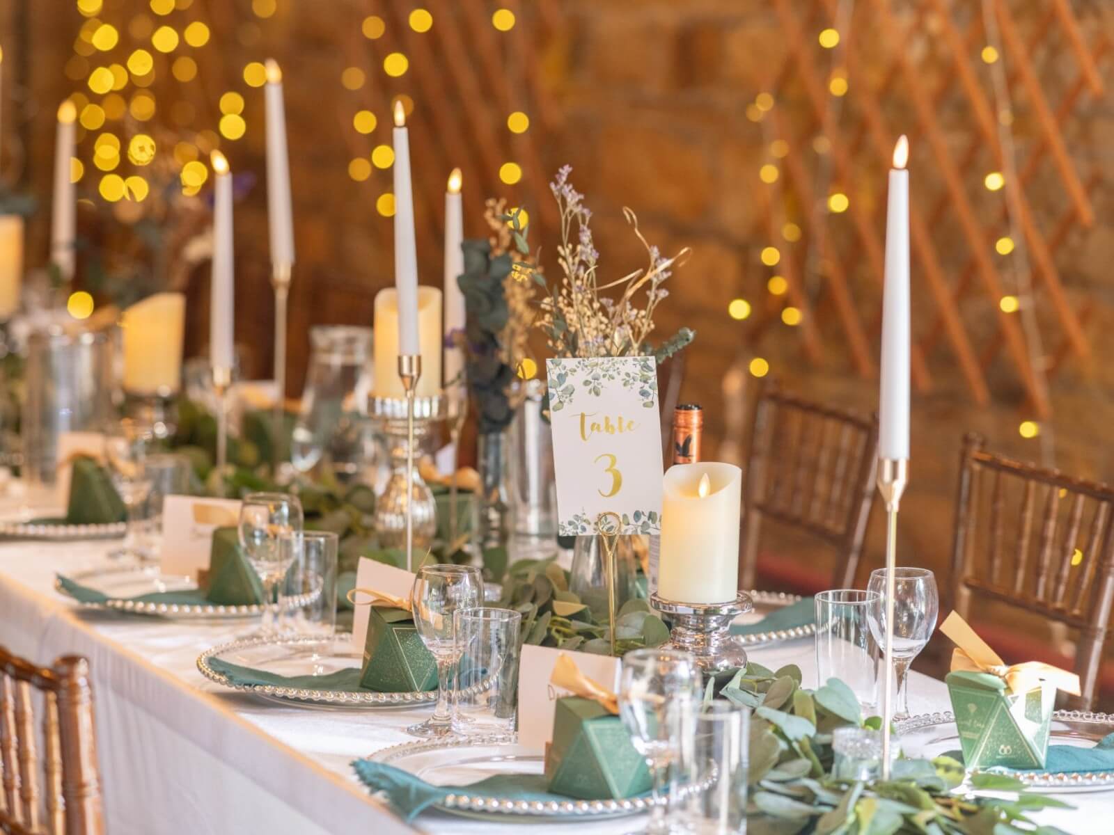 To keep everything coordinated, choose one candle colour across the room and repeat it consistently. A helpful starting point is two to four brass taper candle holders per guest table (depending on size), plus extras for the top table, cake display or welcome area. If you’re planning a larger install, we can recommend quantities that suit your layout and timings.
