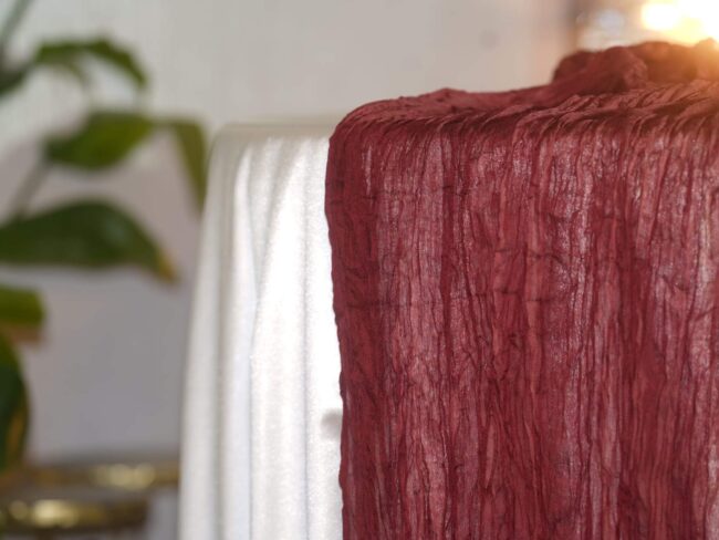 Burgundy Cheesecloth Runner Hire for Weddings and Events