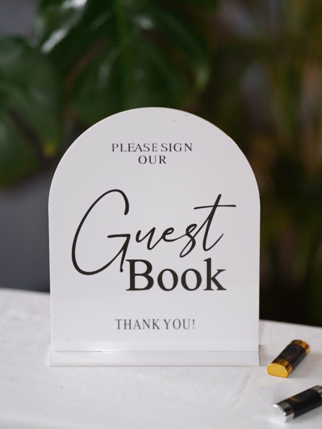 Placed beside your guest books, this guest book sign helps guide guests smoothly—especially when the stationery table also includes cards, gifts or a seating plan nearby. If you’re creating a custom wedding guest book moment, you can match the wording to your theme (for example, “Please sign our guest book” or “Leave a message for the couple”). This guest book sign also works beautifully as a guest book for wedding setups where you want a clean, modern look that photographs well.