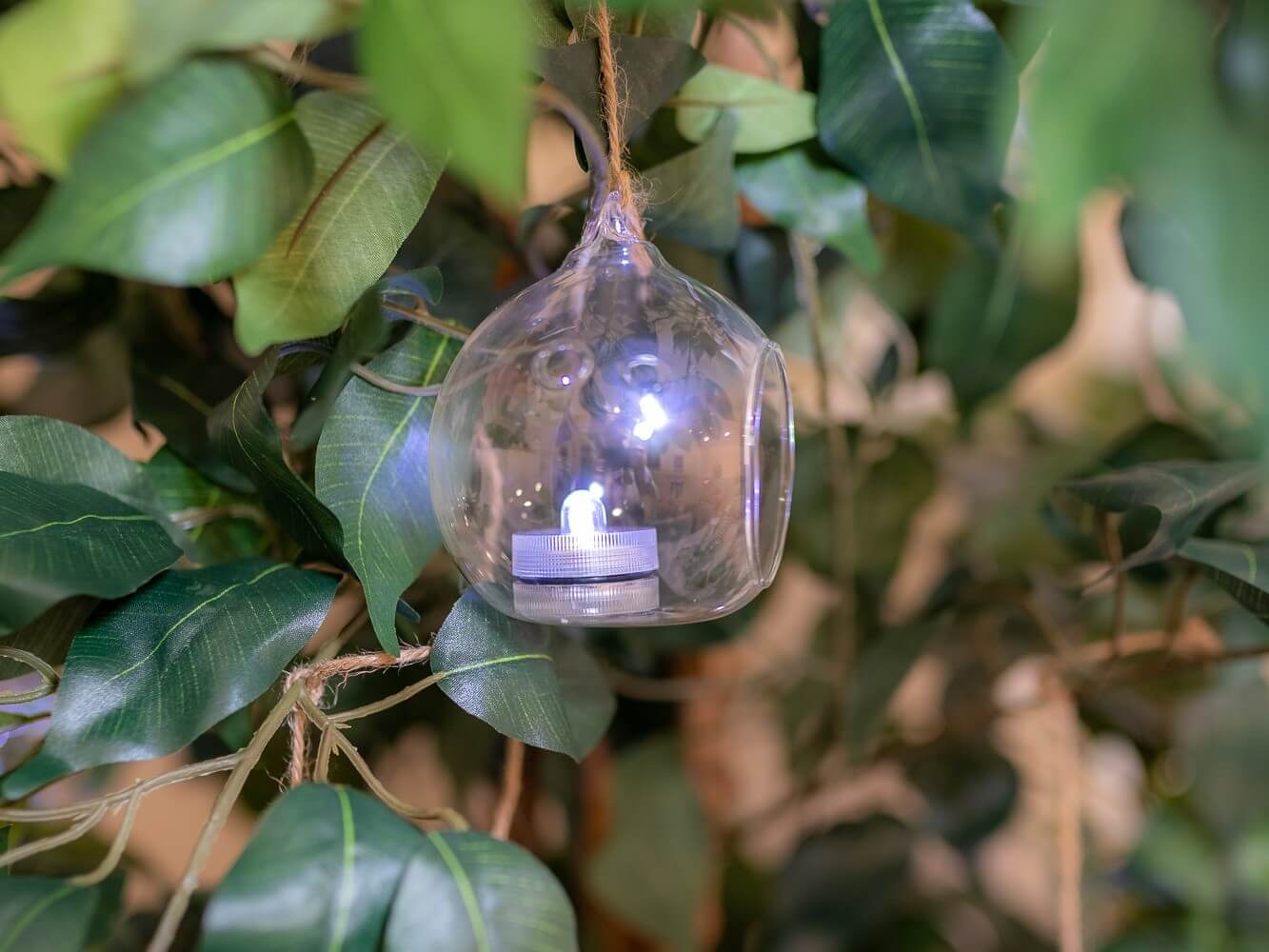 Create a fairy-tale atmosphere at your next celebration with our hanging glass baubles. These delicate spheres catch and reflect candle-light, turning humble tealights into dazzling points of sparkle. Each hanging glass bauble comes with a discrete hook, making it easy to suspend from beams, blossom trees or ceiling installations for an eye-catching, floating display.