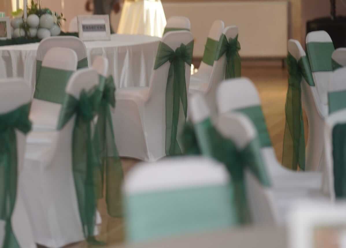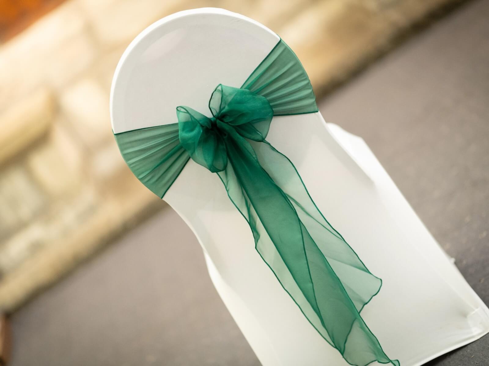 Green chair sash shades for weddings and events across Yorkshire