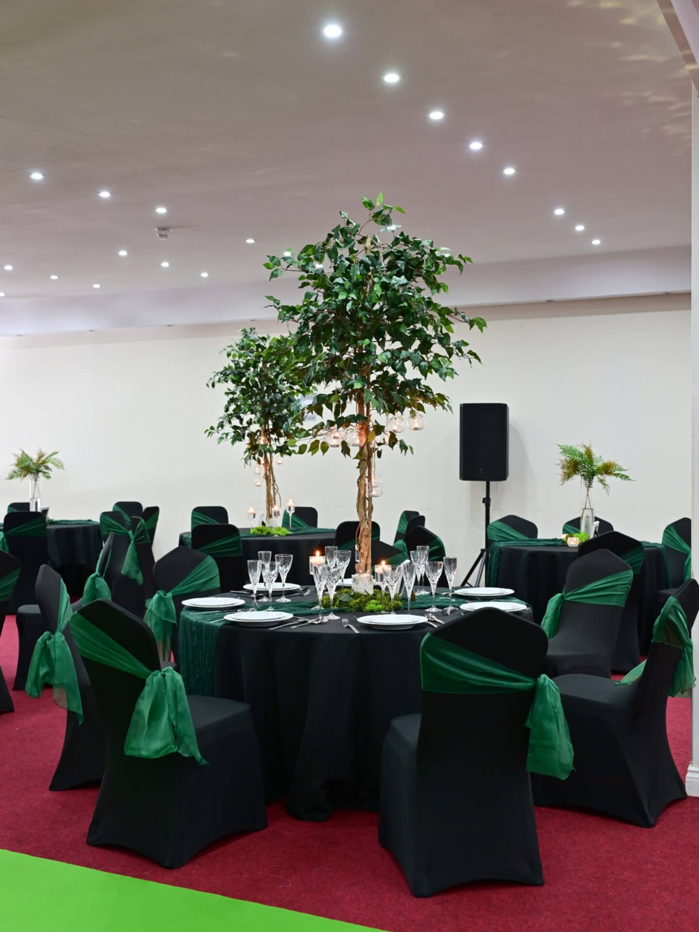 For the most coordinated result, style hunter green sashes on banquet chairs with covers and keep the same tying style throughout the room so your layout looks intentional in photos. To keep your styling consistent from start to finish, many venues find hunter green sashes work best when every chair is dressed the same way.
