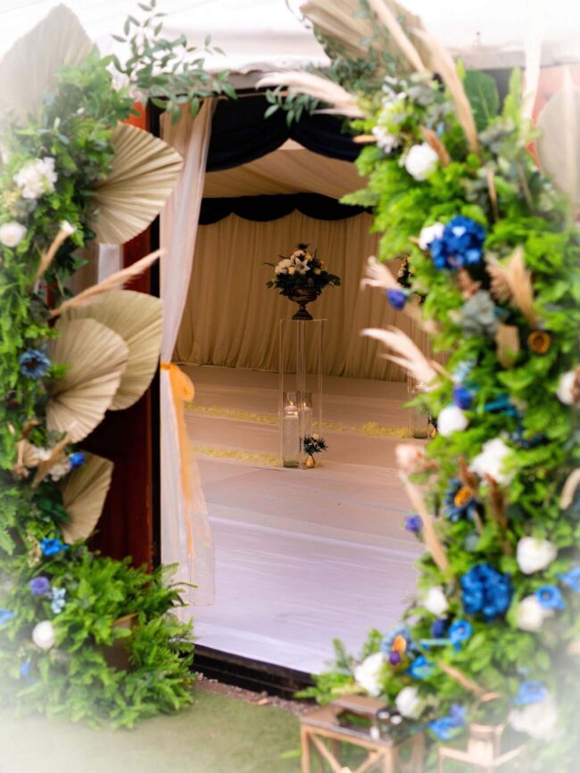 Suitable for both indoor and outdoor settings, the moongate arch adds elegance to barn venues, hotel ballrooms, and marquee weddings. Whether you’re planning a boho-inspired event or a classic celebration, this piece integrates effortlessly into your décor, enhancing the atmosphere with its romantic curves and graceful structure. Our hire service offers flexibility, available as dry hire or with full décor styling and setup. We also provide optional delivery and collection across Leeds, Wakefield, York, and Harrogate, ensuring a smooth and stress-free experience from start to finish.