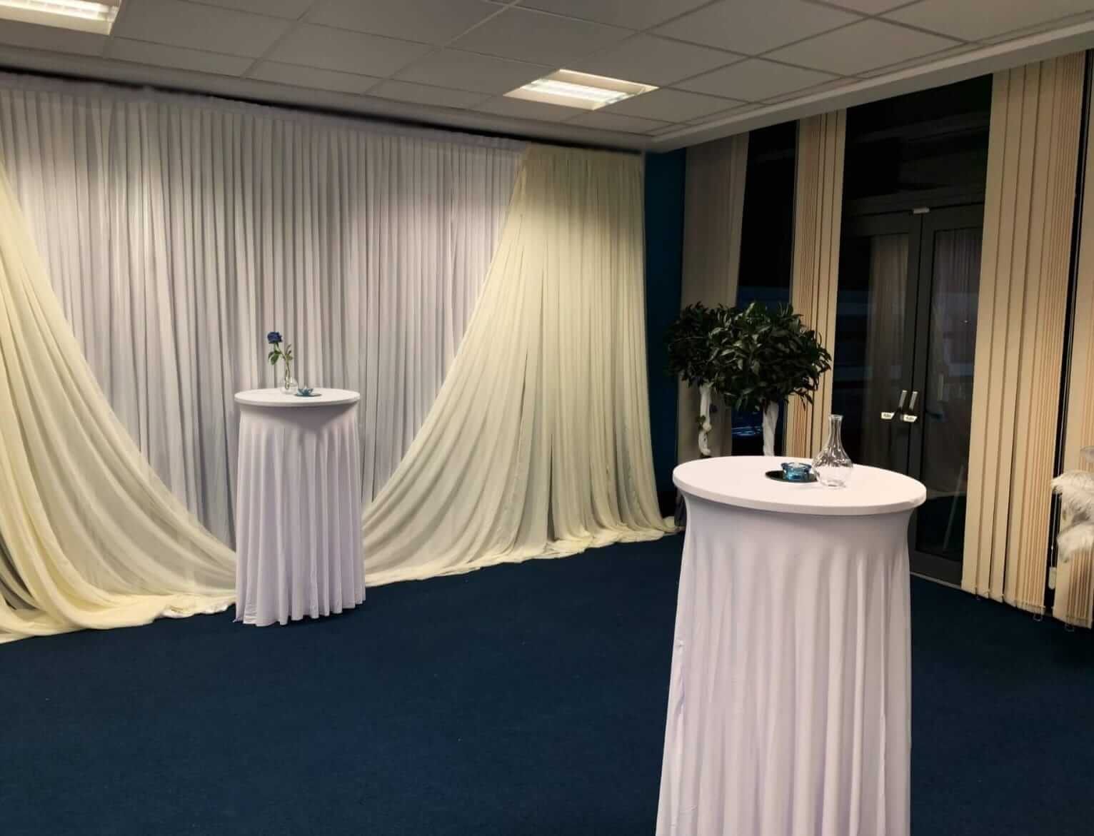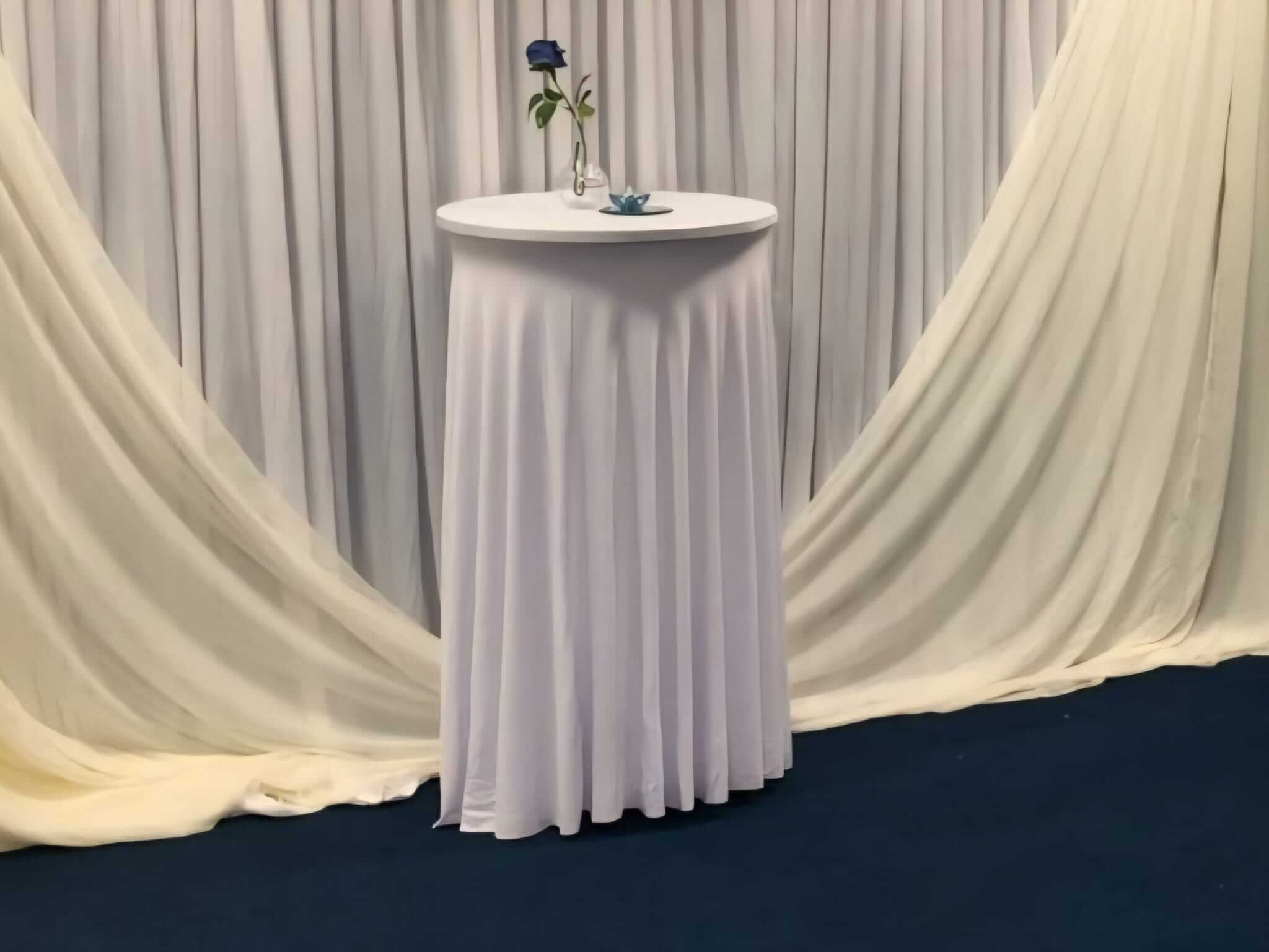 If you are looking for a poseur table cloth for event hire, this white spandex option is made to cover poseur tables with a fitted shape rather than a loose drape. A poseur table cloth like this is ideal for venues that want a smart and consistent finish across drinks tables, welcome areas and networking spaces. The stretch fabric helps the poseur table cloth sit neatly around the table frame, making setup look tidy and professional.