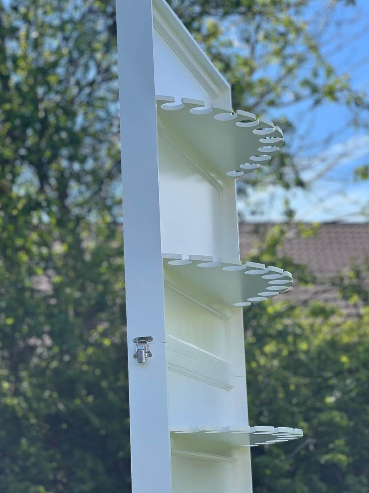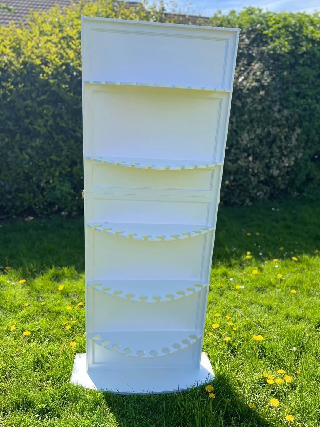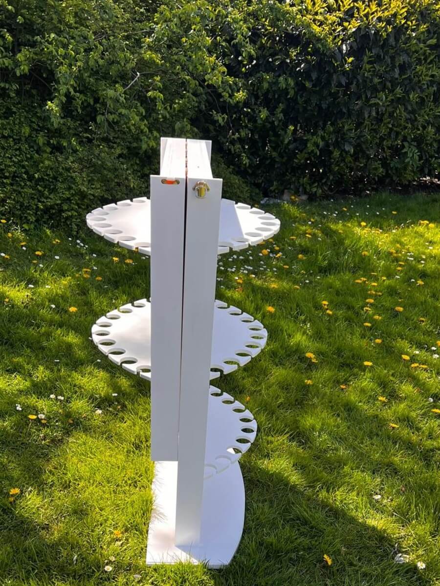 Our prosecco wall hire is a practical, photo-ready drinks display made from wood for a warm, rustic finish. Designed for weddings and events across Yorkshire, it’s ideal for welcome drinks, cocktail hour, or a dedicated champagne moment without needing a full bar back. The wall holds up to 50 flute glasses, helping guests serve smoothly while your styling stays tidy and consistent.