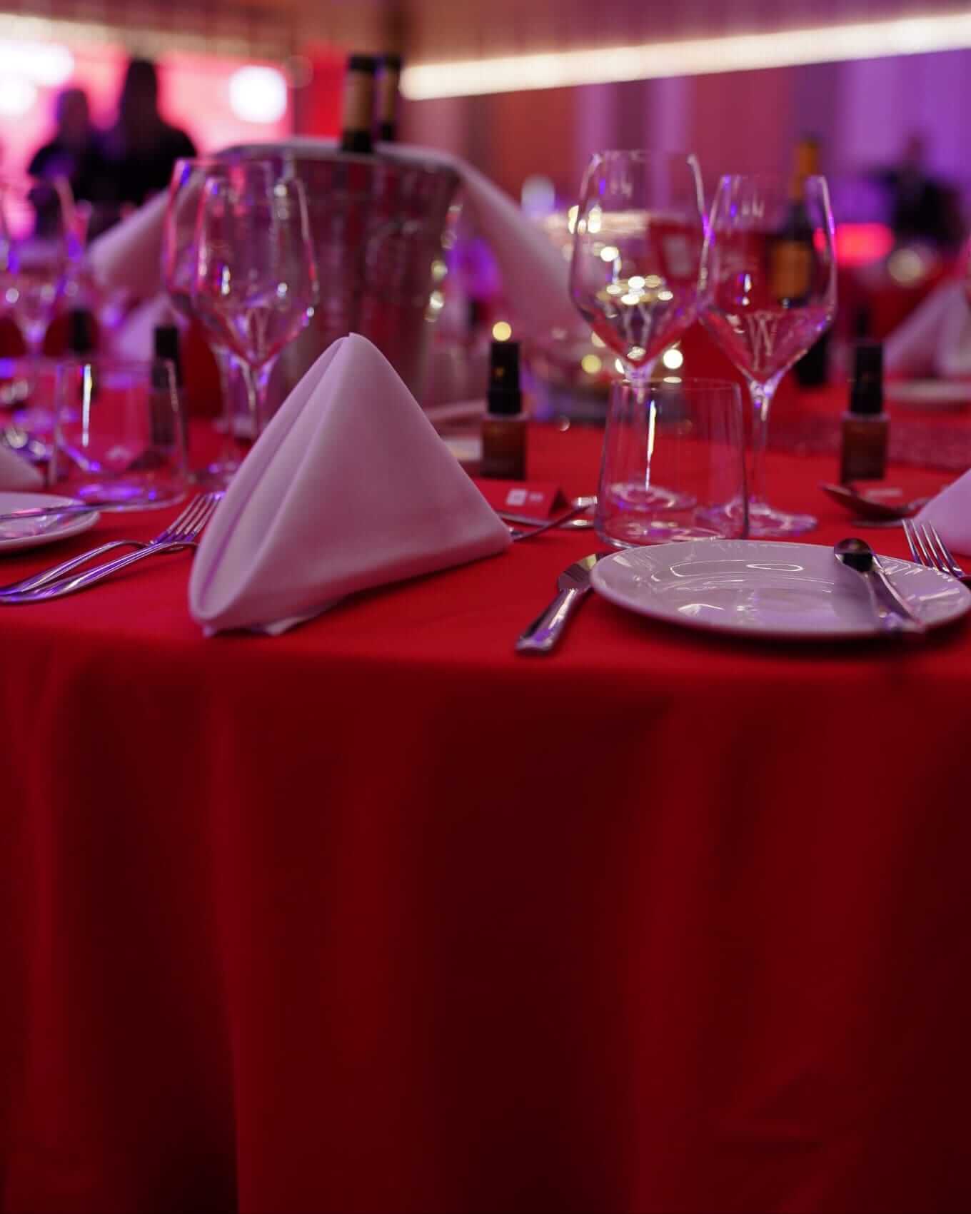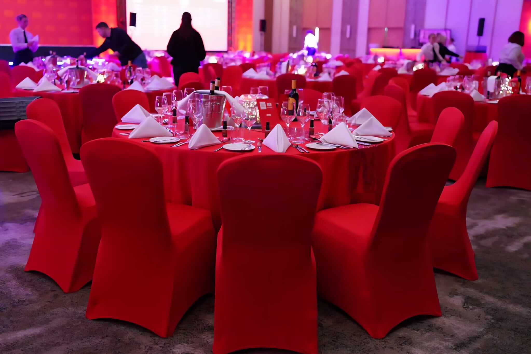 This red table cloth is part of our table linens category and is intended for hire use on event tables rather than styling inspiration. Customers looking for matching linen across multiple round tables can use this option to create a consistent layout, while still pairing it with their own décor choices. We can also help you confirm quantities based on the number of guest tables in your plan.
