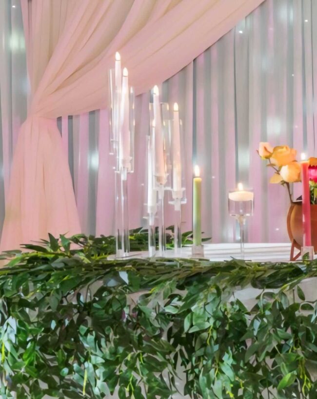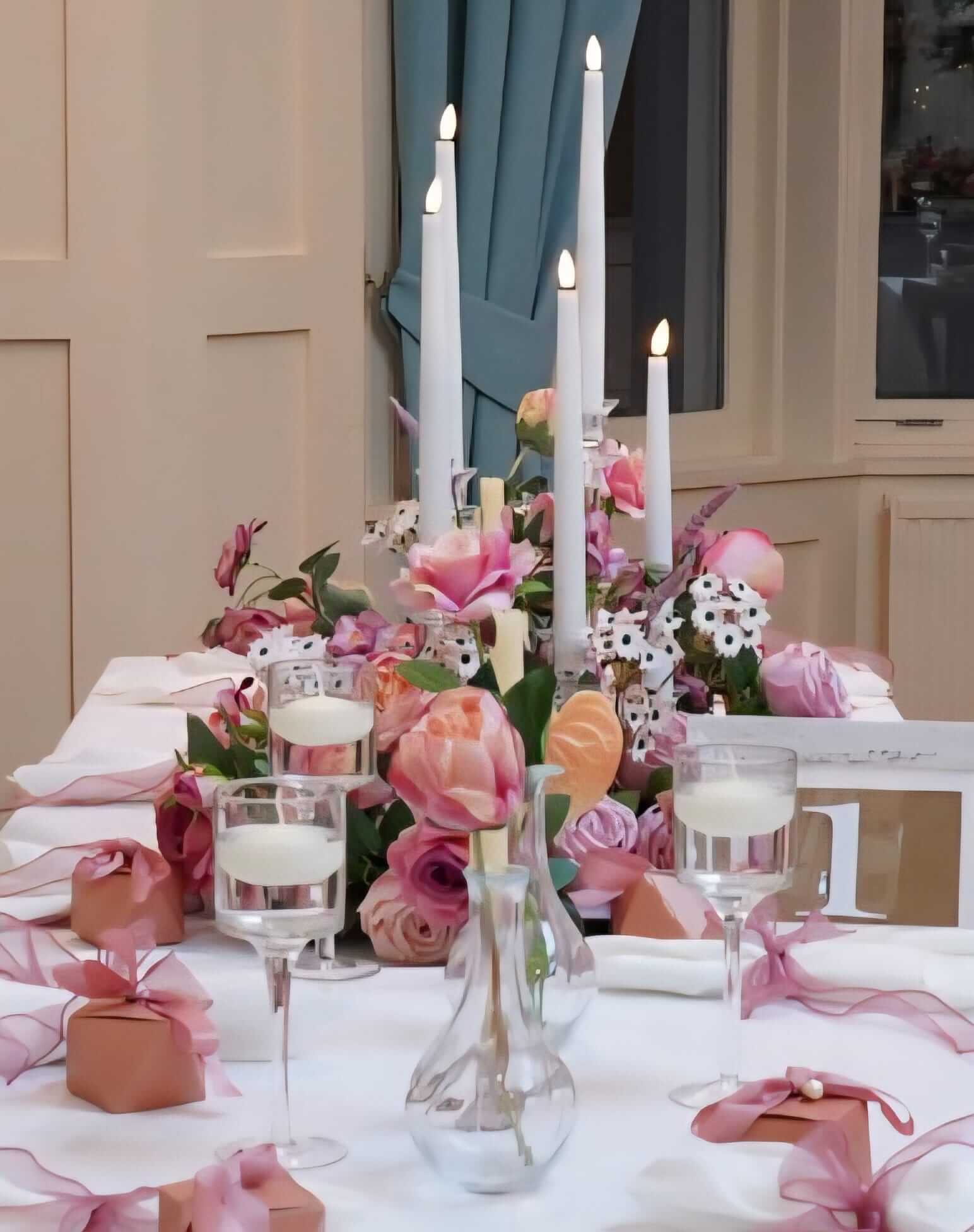 This 5-head design creates impact without needing multiple separate holders. Place the taper candle hurricane as a focal point on each table, or use it to highlight key areas like the welcome table, gift station or cake display. It’s especially useful in venues that prefer LED options, or for outdoor areas where wind would normally affect candlelight.