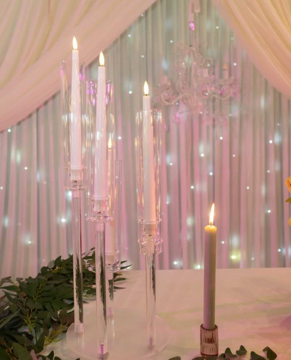 If you love the look of taper candles but need a safer, more practical option, the taper candle hurricane gives you that tall, refined candlelight effect in a controlled LED format. The clear acrylic tubes protect the flame look, keep styling tidy, and reduce worries about drafts, wax, or venue restrictions.