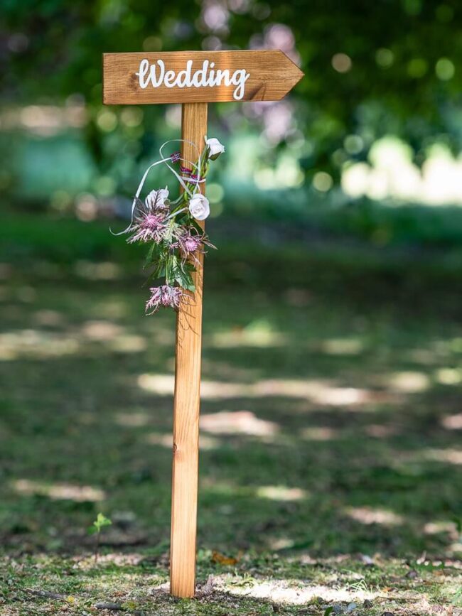 Wedding direction sign details, placement ideas and hire info