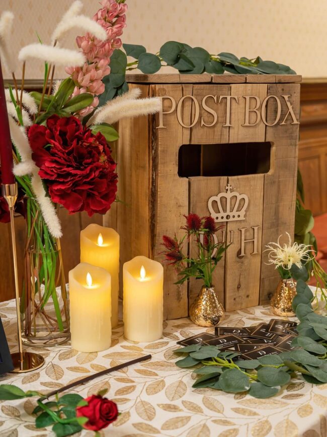 Keep your cards organised from arrival drinks to the evening reception with a wedding post box hire option that looks smart in any venue. This wooden wedding post box (often searched as a wedding postbox) is ideal if you want a simple, coordinated setup without cluttering the table.