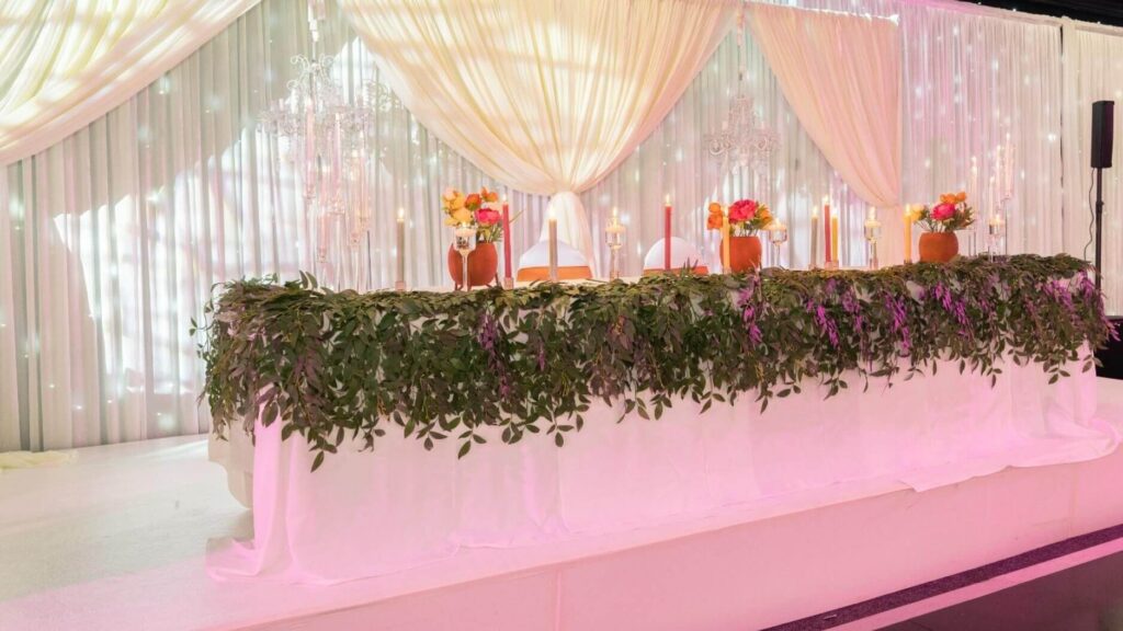 For weddings, the stage often symbolises unity — it’s the setting for your vows or your first dance as a married couple. For nikkah and mehndi ceremonies, it reflects cultural beauty, warmth, and togetherness. For corporate functions, it represents professionalism, prestige, and attention to detail.